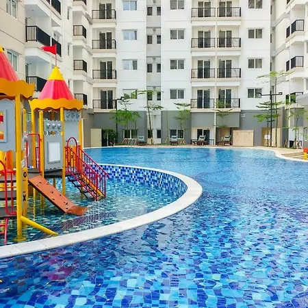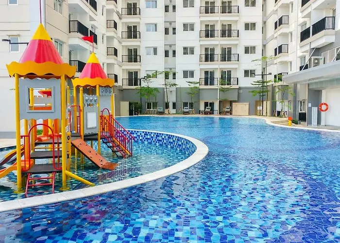 Offering an outdoor pool, the 38 m² Homey And Comfy 1Br Signature Park Grande Apartment By Travelio is situated just 5 minutes' walk from Cornel Simanjuntak Park. Essential amenities, such as parking for guests with cars, a cash machine and a lift are provided by the apartment.